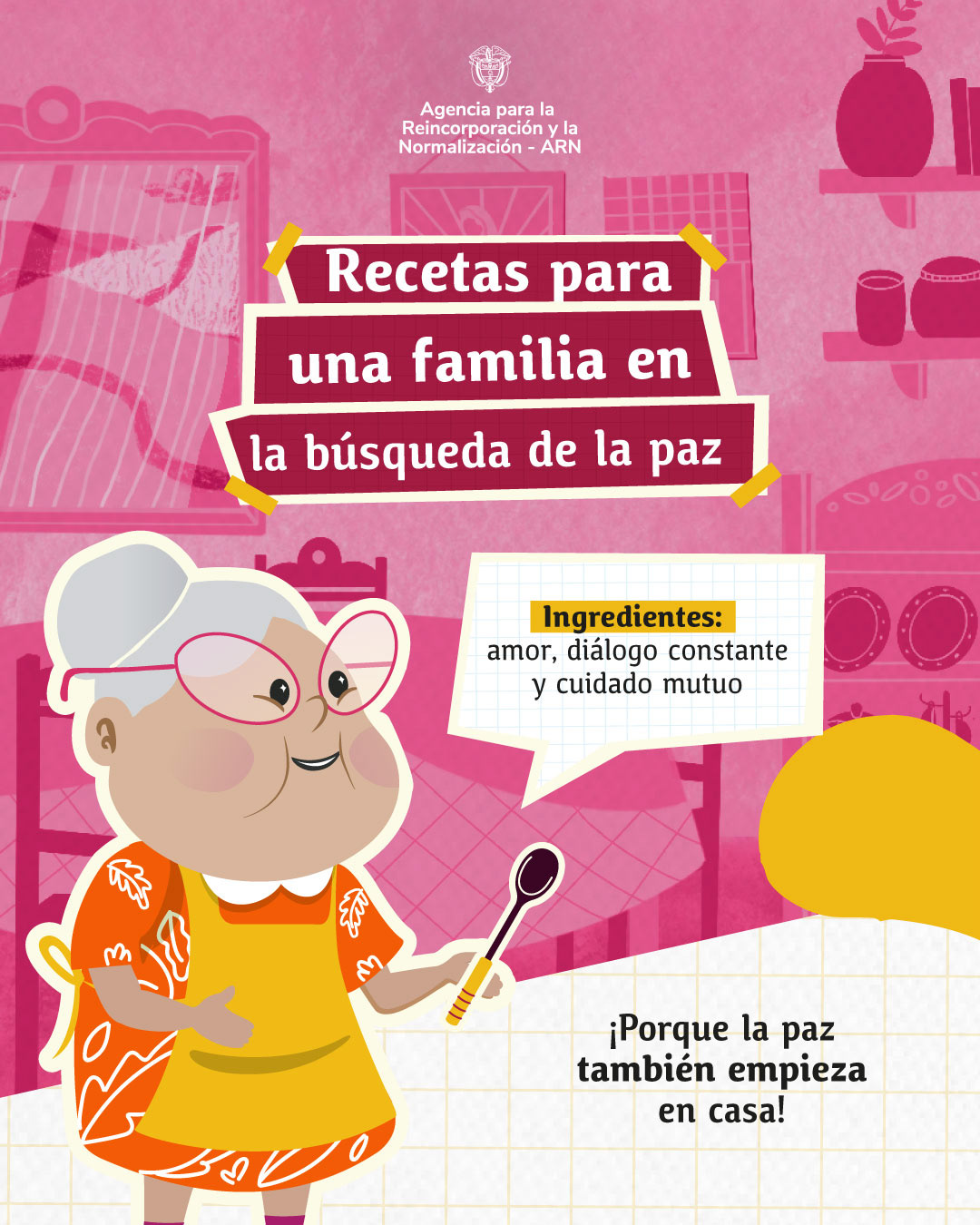 Diseño de personaje para el formato de RRSS 'Remedios para la Paz' de la Agencia para la Reincorporación y la Normalización - ARN. Este personaje fue construido en conjunto por el equipo de diseño de la Oficina Asesora de Comunicaciones.